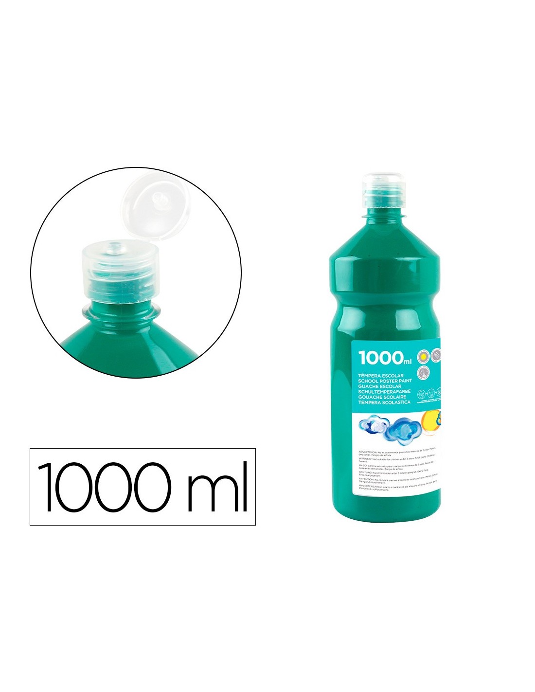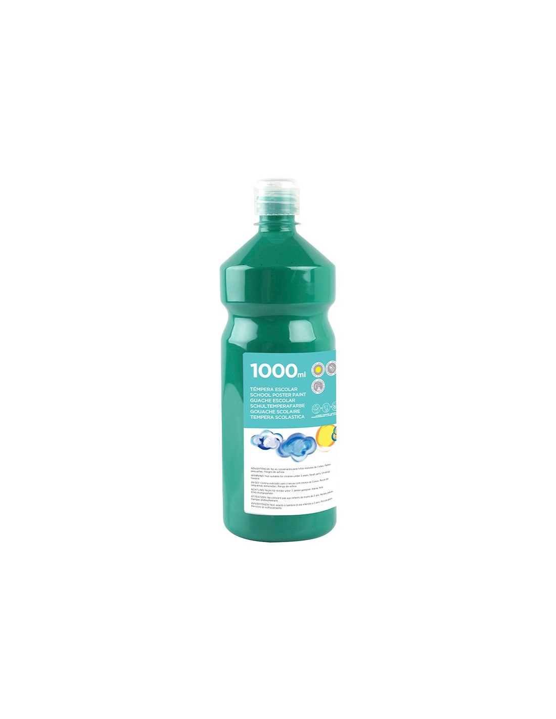 Témpera escolar lista para usar. Ideal para uso escolar. Adecuada a partir de los 3 años de edad. Superlavable. Con cierre de seguridad. Colores brillantes. La botella de 1000 ml.