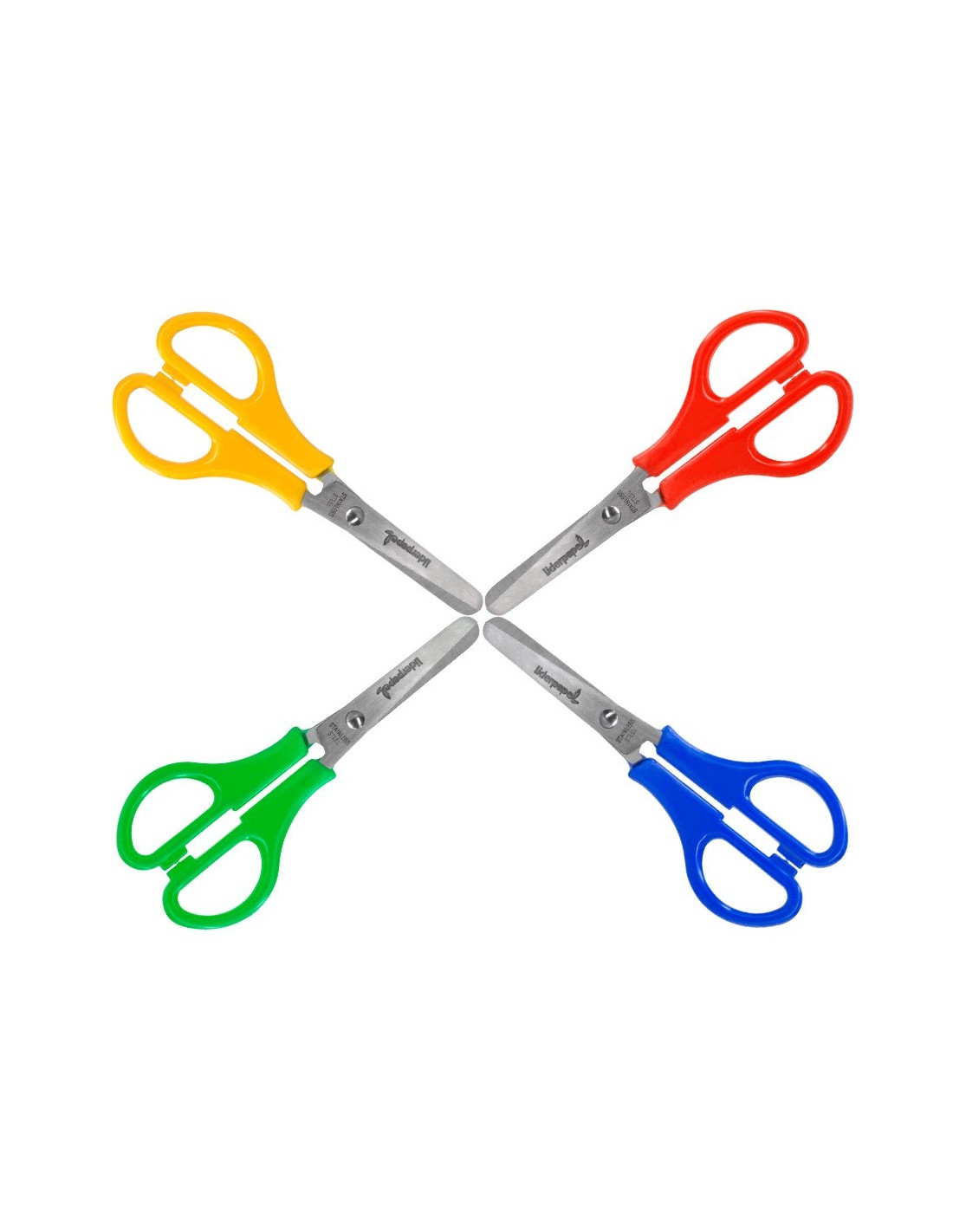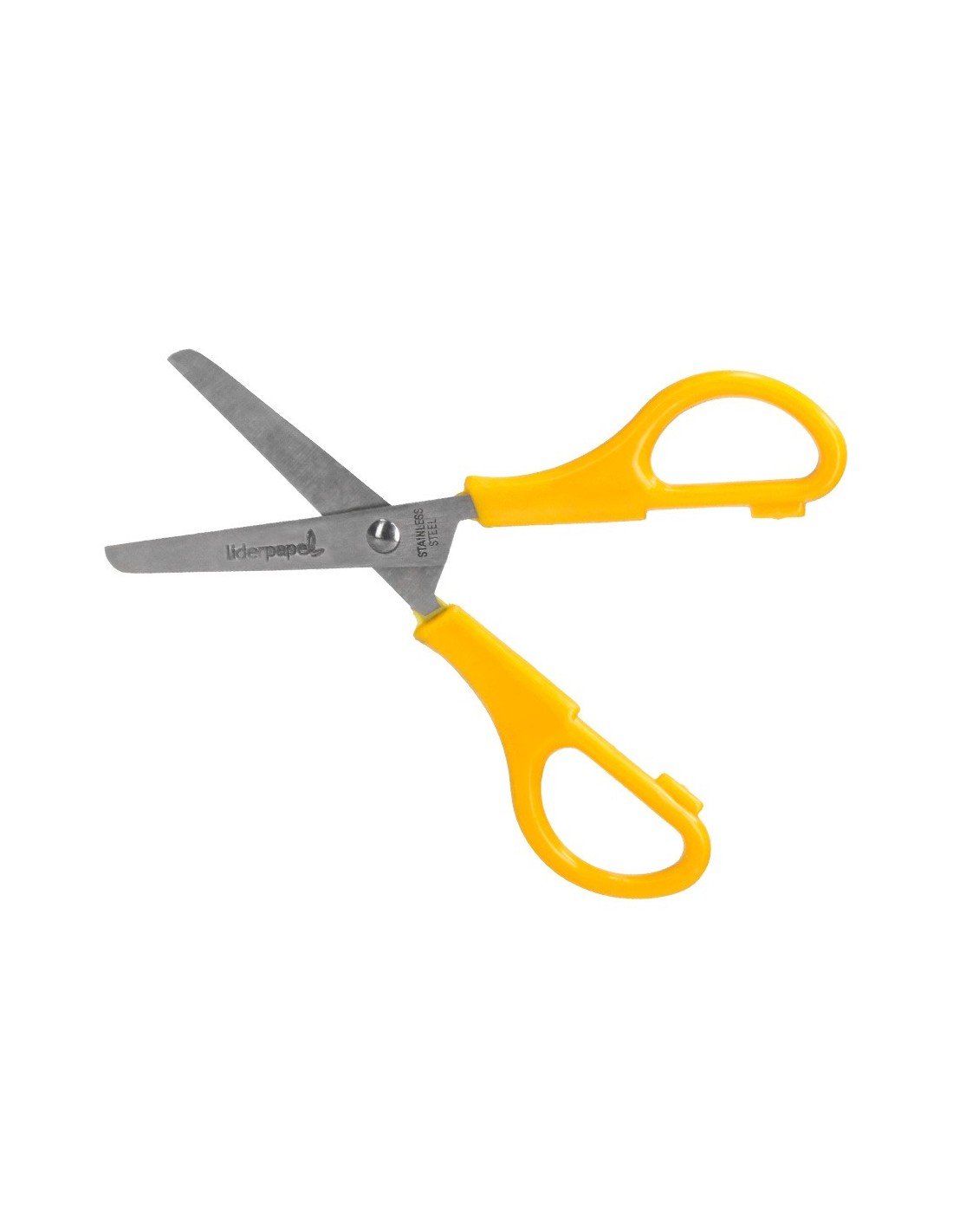Con puntas redondeadas antipinchazos y hoja de acero inoxidable. Mango de plástico agradable al tacto. Apta para uso doméstico Y De oficina. CORTA papel, cartón, fotos, tela, etc. Con funda. Colores surtidos. LongITUD 14 cm.SE RECOMIENDA UTILIZAR LAS TIJERAS BAJO LA SUPERVISIÓN DE UN ADULTO.