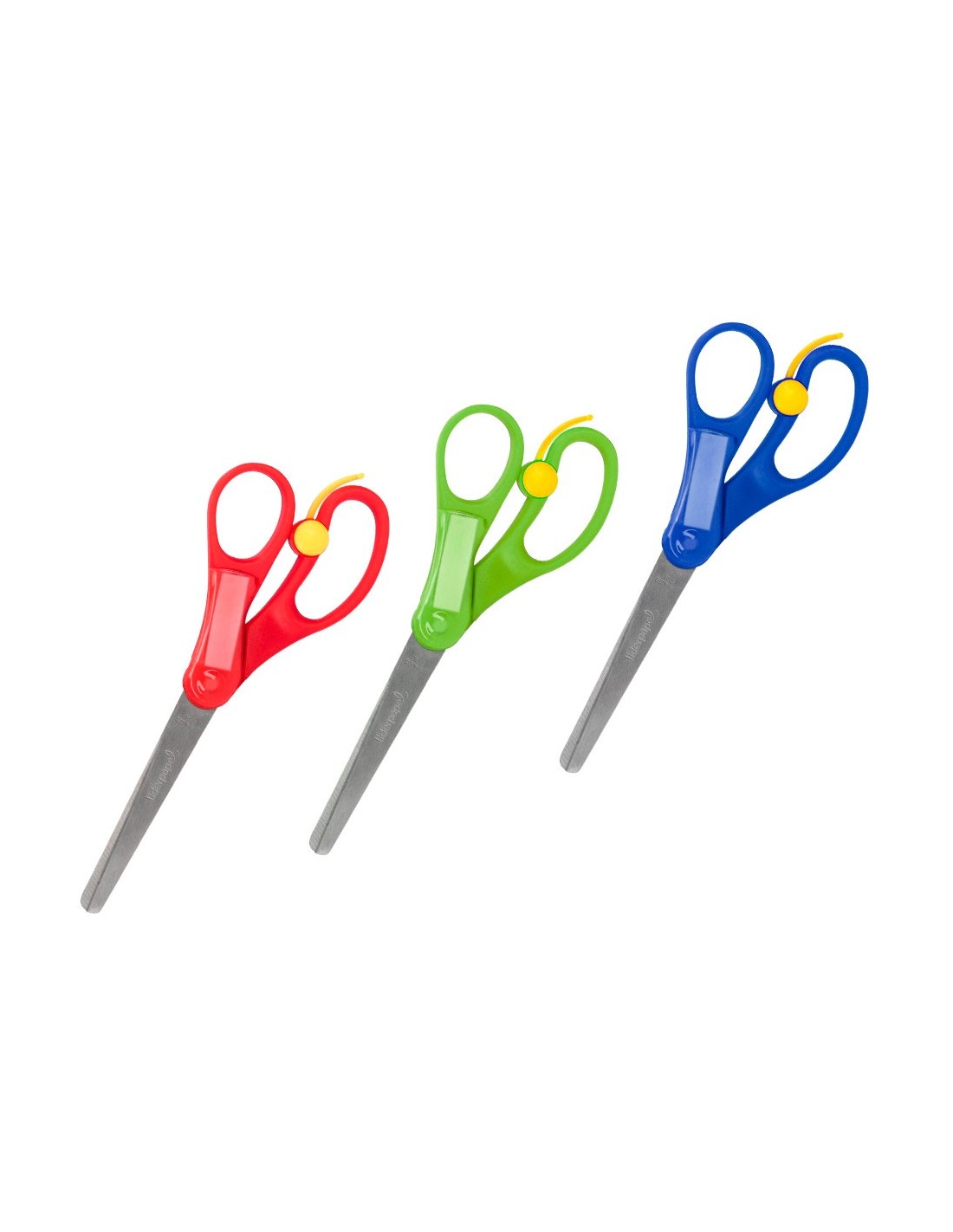 Tijera con apertura automática y resorte para facilitar la acción de corte. Con pestaña para personalizar. Hojas de acero inoxidable. Mango de plástico agradable al tacto. Punta redonda antipinchazos. Apta para TODOS LOS USOS.Corta papel, cartón, fotos, tela, etc. Longitud:15 CM. SE RECOMIENDA UTILIZAR LAS TIJERAS BAJO SUPERVISIÓN DE UN ADULTO.