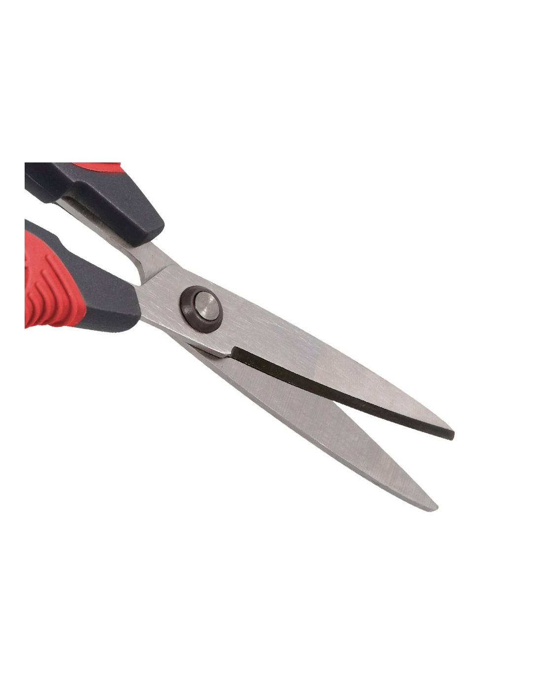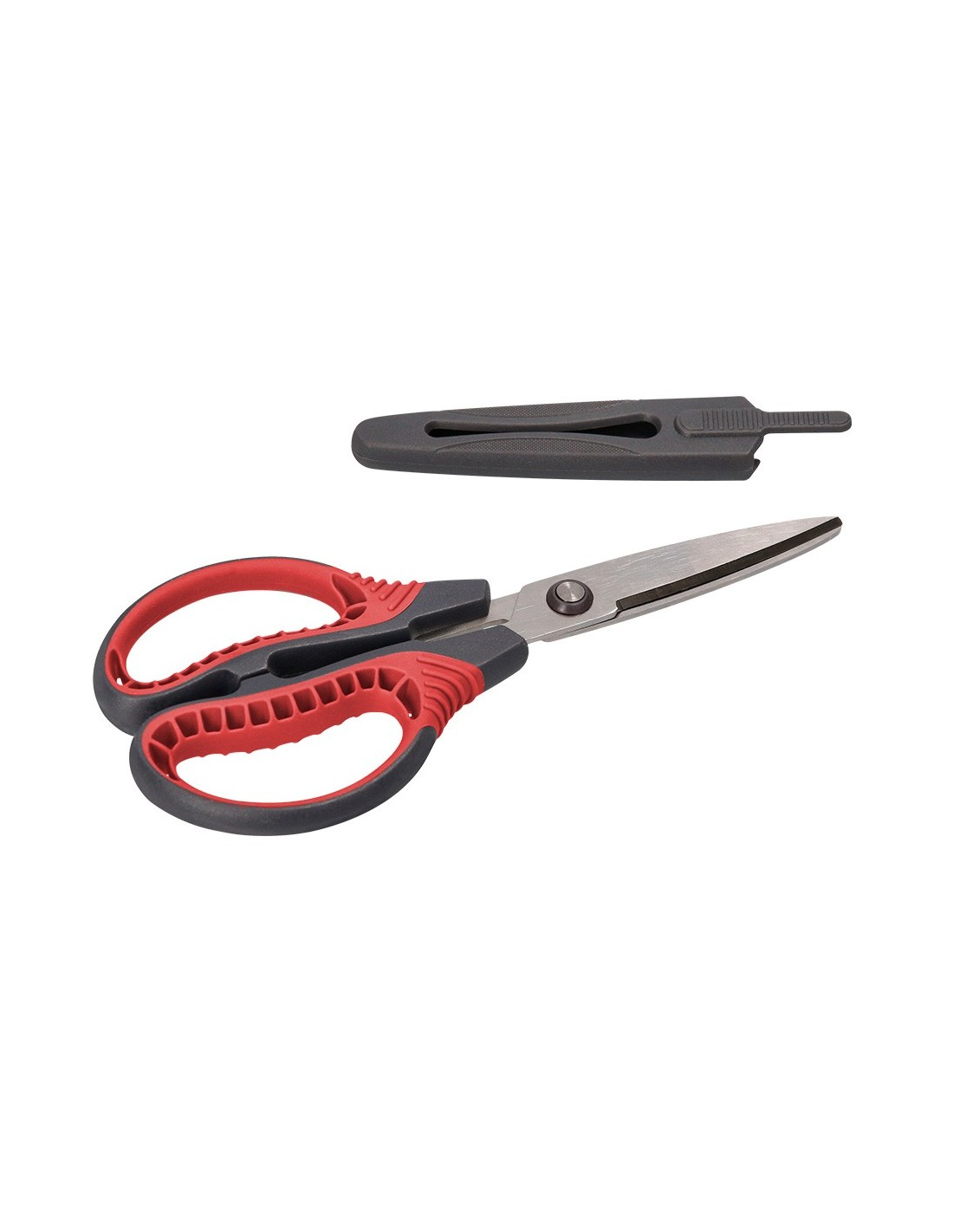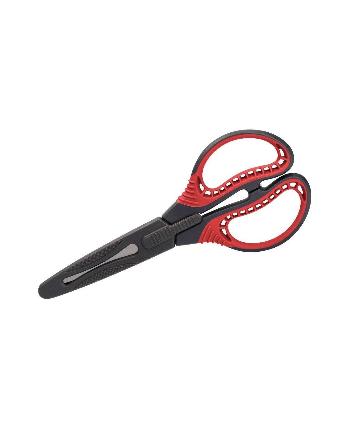 Tijera con recubrimiento de titanio, mayor resistencia y durabilidad. Hojas curvas para facilitar el corte. Incluye funda protectora. Longitud 16,5 cm. Presentación en blíster.