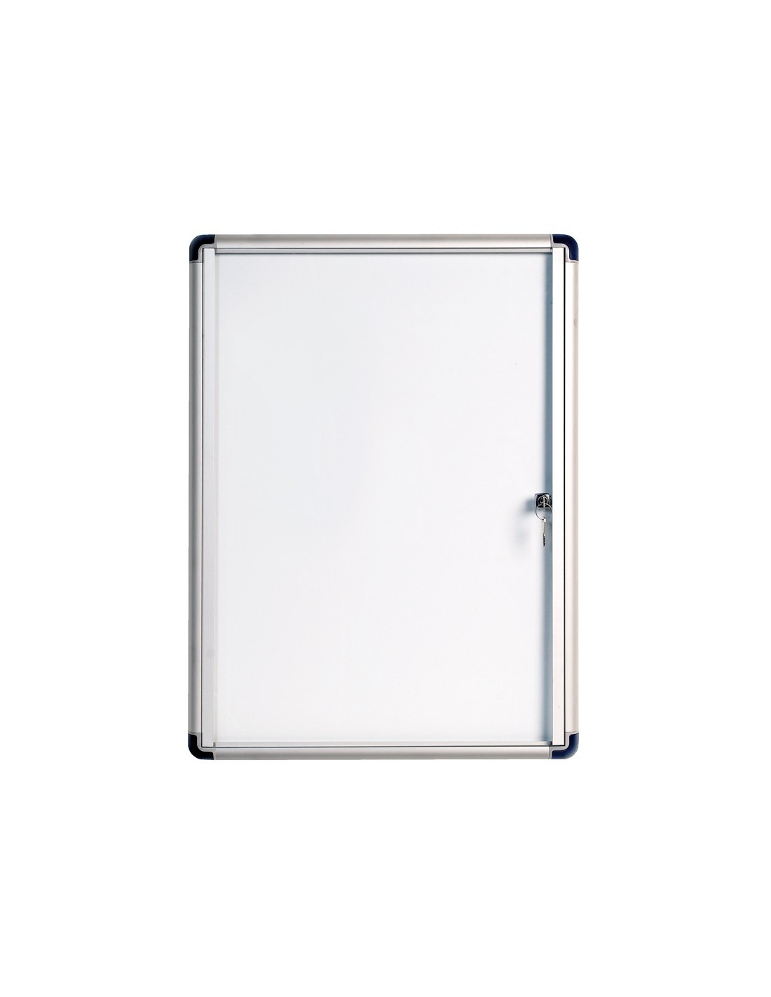 Vitrina de anuncios extra plana acristalada con marco de aluminio y superficie magnética de acero lacado en blanco. Cristal acrílico de alta transparencia que aporta gran visibilidad. Para utilizar con imanes y con rotuladores de borrado en seco. Incluye kit de fijación fácil. Puerta batiente y cerradura con 2 llaves incluidas. Muy delgada y ligera, con tan sólo 3,1 cm de espesor.