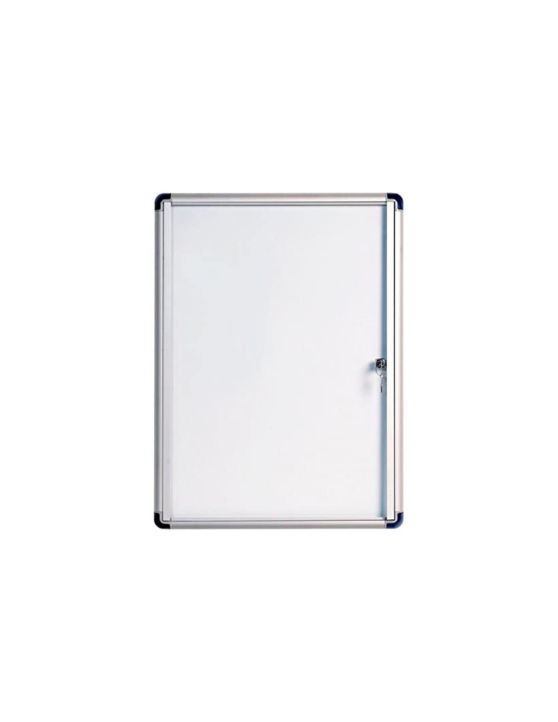 Vitrina de anuncios extra plana acristalada con marco de aluminio y superficie magnética de acero lacado en blanco. Cristal acrílico de alta transparencia que aporta gran visibilidad. Para utilizar con imanes y con rotuladores de borrado en seco. Incluye kit de fijación fácil. Puerta batiente y cerradura con 2 llaves incluidas. Muy delgada y ligera, con tan sólo 3,1 cm de espesor.